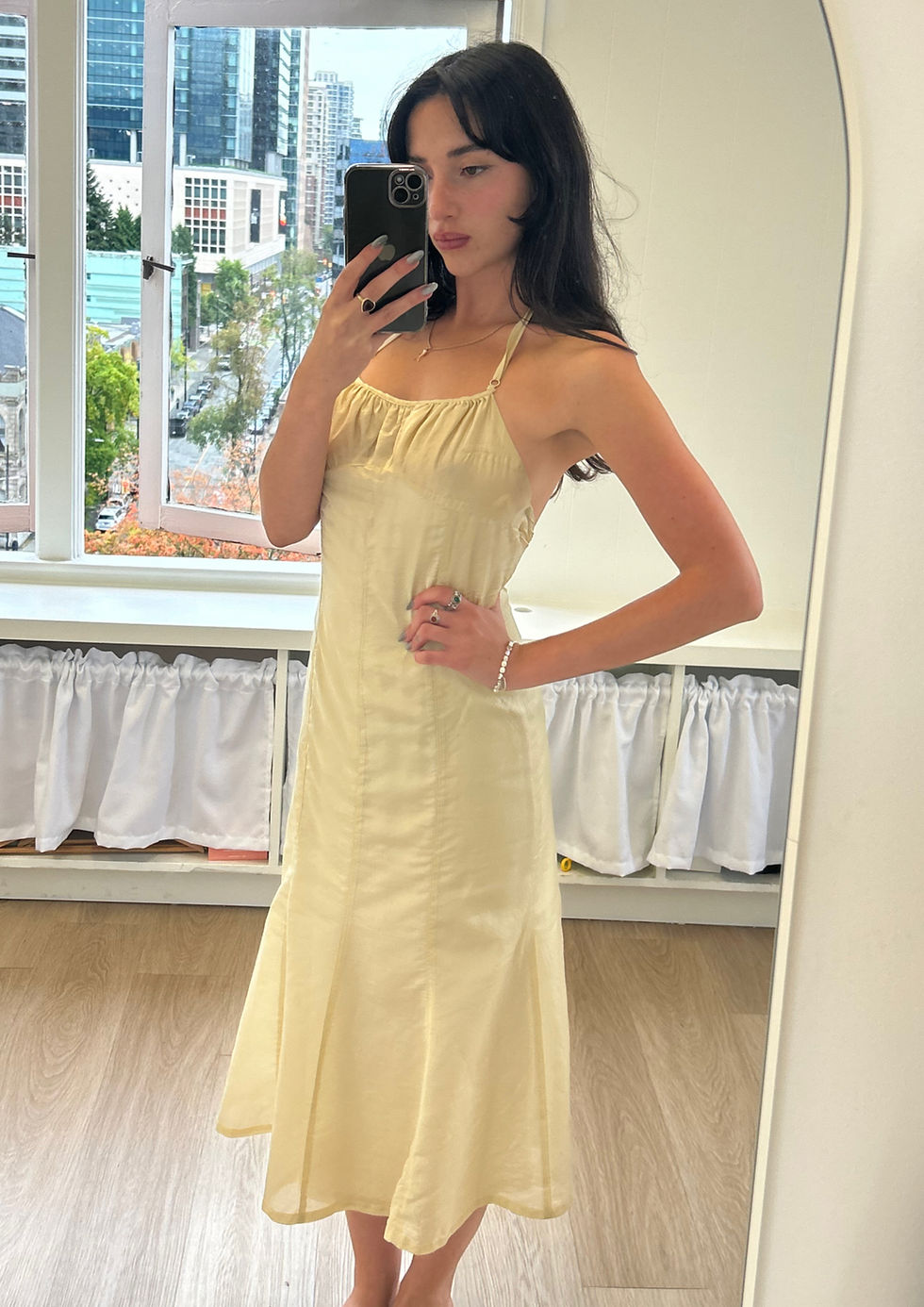 The Nikita is fitted in the bodice with a relaxed fitting skirt, so you get structure and comfort all in one. This dress features tie straps and a smocked back bodice to provide a little bit of stretch.